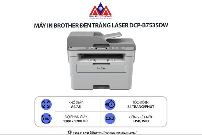 Brother DCP-B7535DW là dòng máy in laser đa năng mới nhất trong phân khúc văn phòng cao cấp. Nhưng liệu Brother 7535DW có in 2 mặt tự động không? Và hiệu quả thực tế khi sử dụng máy in chuẩn Nhật nhập khẩu này ra sao? Hãy cùng Công Nghệ Minh Anh Quận 7 đánh giá chi tiết để bạn có cái nhìn toàn diện trước khi quyết định đầu tư.