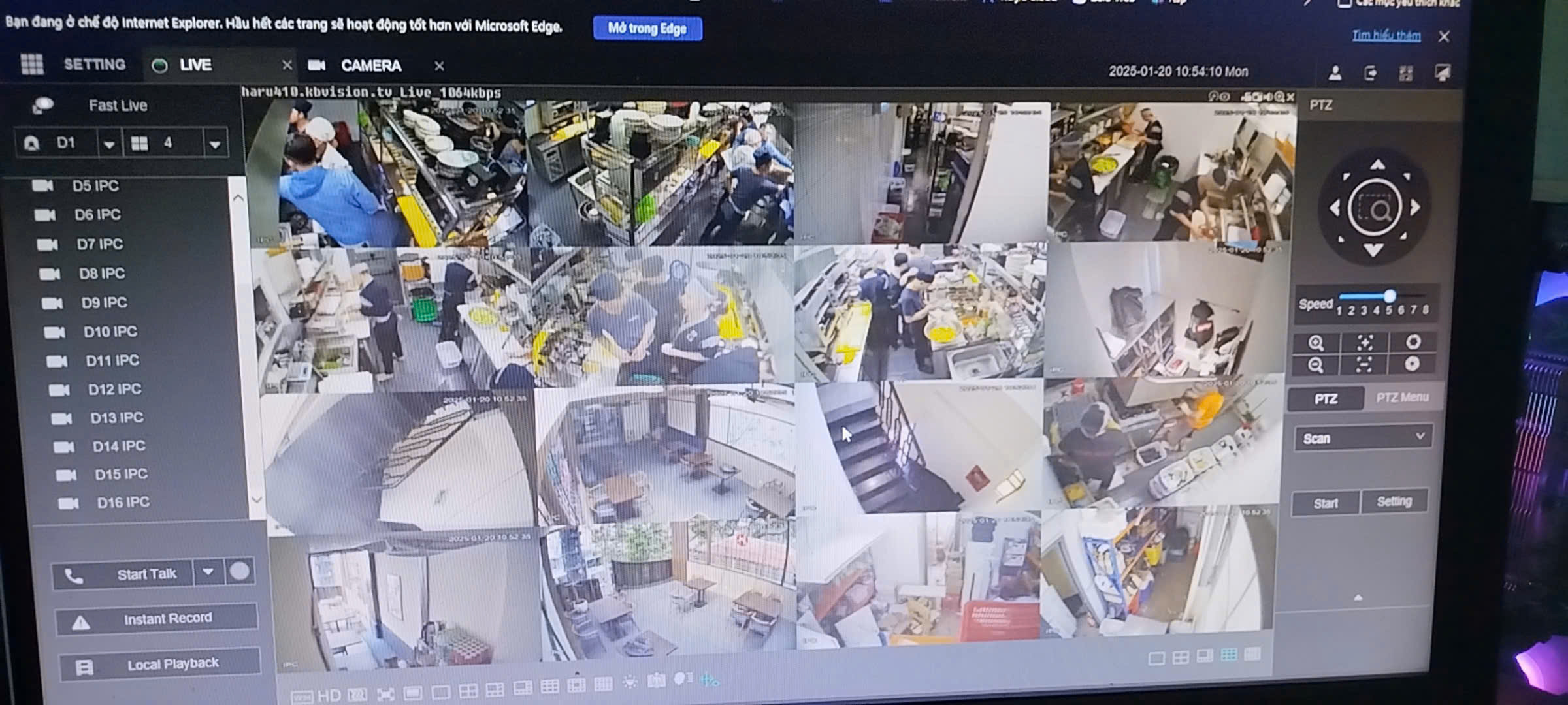 - Camera đảm bảo hình ảnh sắc nét, giúp theo dõi toàn bộ các khu vực trong nhà hàng từ quầy thu ngân đến khu vực ăn uống.