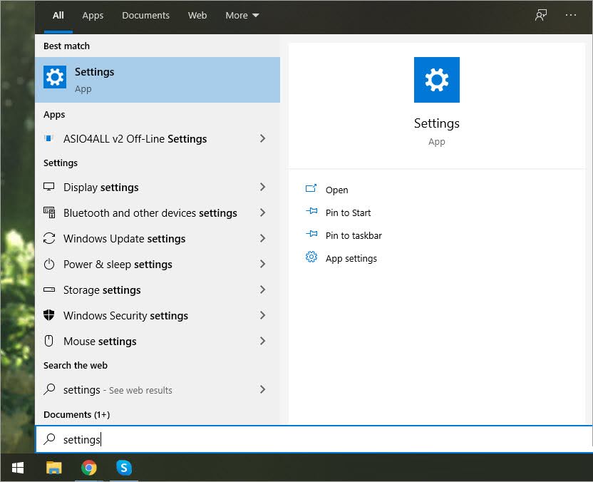 Bước 1: Đầu tiên, các bạn mở MenuStart và nhập Settings để mở cài đặt.
