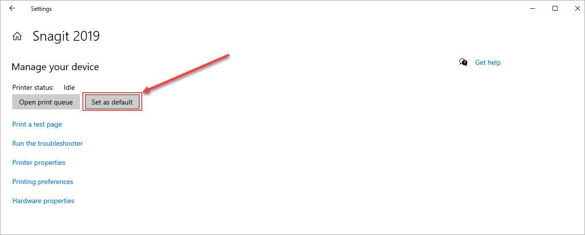 Bước 5: Khi cài đặt máy in được mở ra, các bạn chọn Set as default để đặt chúng làm máy in mặc định cho Windows 10.
