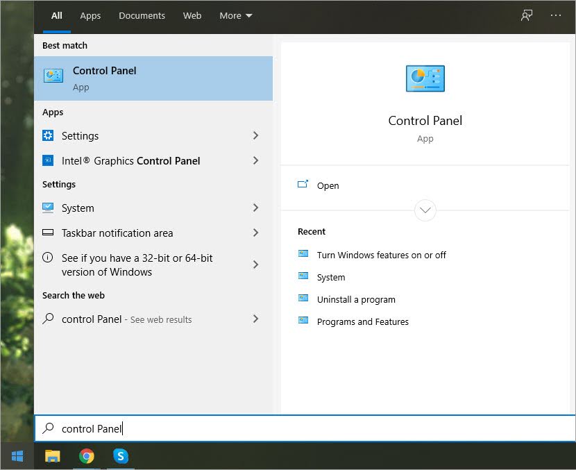 Bước 1: Các bạn tiến hành mở MenuStart và nhập Control Panel để mở.