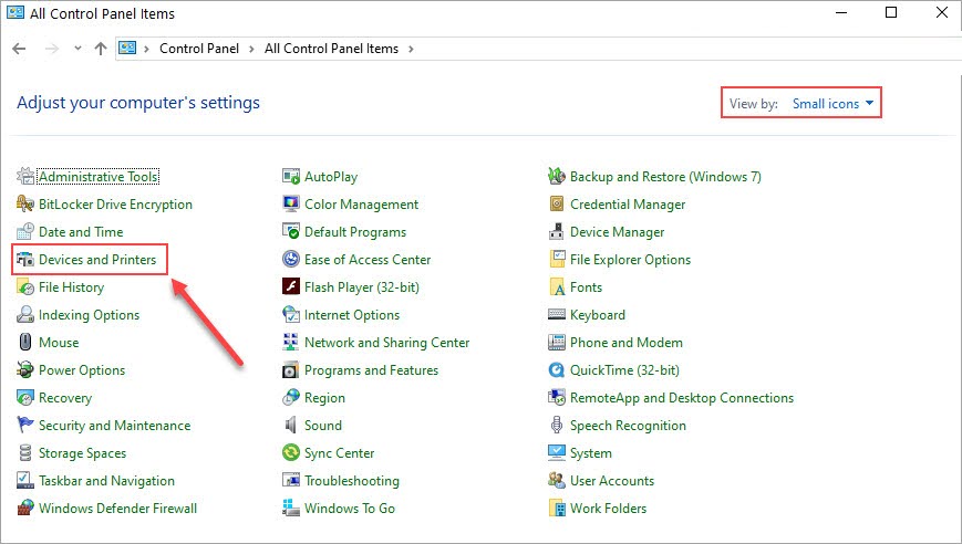 Cách 2: Thiết lập máy in mặc định trong Control Panel