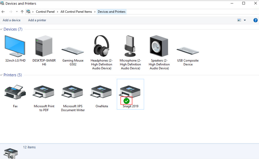 Máy in mặc định trên Windows 10 sẽ được đánh dấu tích xanh như hình dưới đây.