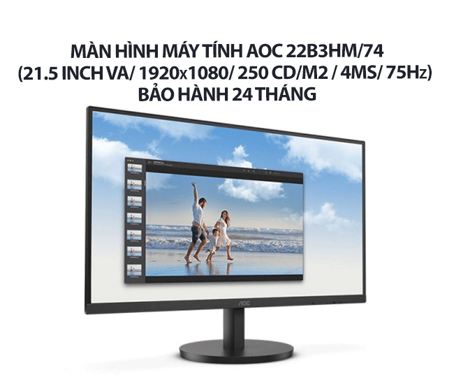 Màn hình máy tính AOC 22B3HM/74 (21.5 inch VA/ 1920 x 1080/ 250 cd/m2/ 4ms/ 75Hz), bảo hành 24 tháng – Sự lựa chọn lý tưởng cho nhu cầu sử dụng hàng ngày