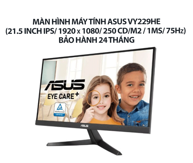 Màn hình máy tính Asus VY229HE (21.5 inch IPS/ 1920 x 1080/ 250 cd/m2/ 1ms/ 75Hz), bảo hành 24 tháng - Lựa Chọn Tối Ưu Cho Học Tập, Làm Việc và Giải Trí