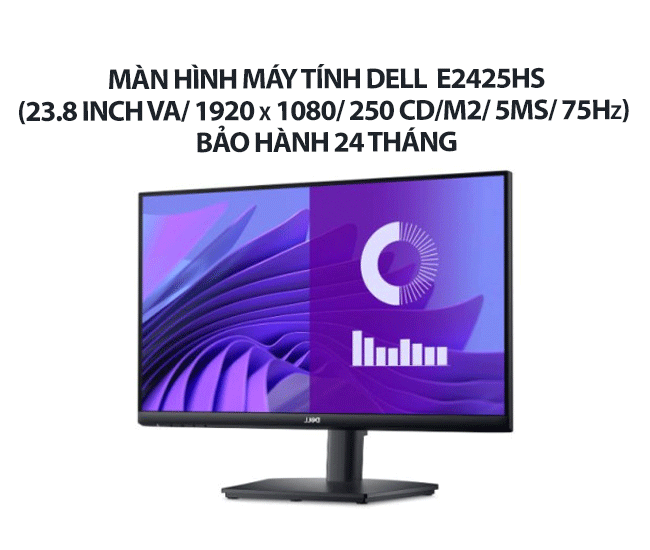 Màn hình Dell E2425HS sở hữu kích thước 23.8 inch, độ phân giải Full HD (1920 x 1080), mang lại hình ảnh rõ ràng, chi tiết sống động trong từng khung hình. Đây là lựa chọn lý tưởng cho dân văn phòng, học sinh sinh viên, hay bất kỳ ai đang tìm kiếm màn hình làm việc chất lượng.