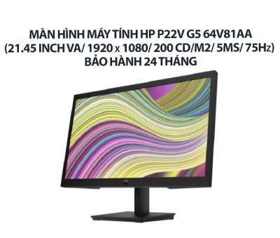 Màn hình máy tính HP P22v G5 64V81AA (21.45 inch VA/ 1920 x 1080/ 200 nits/ 5ms/ 75Hz), bảo hành 24 tháng - Hiệu Suất Đáng Tin Cậy và Thiết Kế Nhỏ Gọn