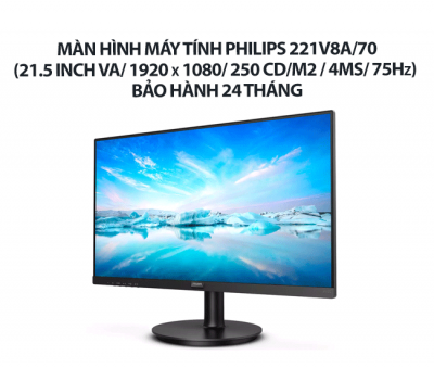 - Màn hình máy tính Philips 221V8A/70 (21.5 inch VA/ 1920 x 1080/ 250 cd/m2/ 4ms/ 75Hz), bảo hành 24 tháng - Trải Nghiệm Hình Ảnh Sắc Nét Và Bảo Vệ Mắt Tối Ưu
