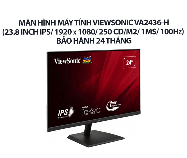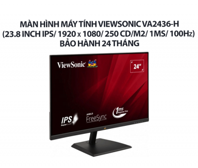 Màn hình máy tính Viewsonic VA2436-H (23.8 inch IPS/ 1920 x 1080/ 250 cd/m²/ 1ms/ 100Hz), bảo hành 24 tháng - Trải Nghiệm Hình Ảnh Sắc Nét Và Mượt Mà