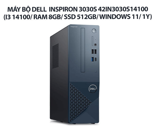 Máy bộ Dell Inspiron 3030S 42IN3030S14100 (i3 14100/ Ram 8GB/ SSD 512GB/ Windows 11/ 1Y) - Lựa Chọn Hoàn Hảo Cho Không Gian Làm Việc Hạn Chế