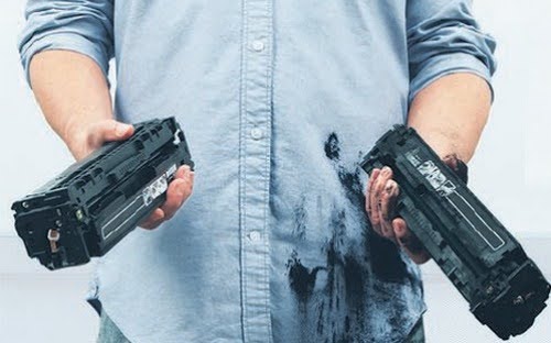 Khi hộp mực được đổ quá nhiều hoặc sử dụng mực kém chất lượng, mực có thể tràn ra ngoài, dính vào các bộ phận bên trong máy gây ra hiện tượng đen trang giấy.