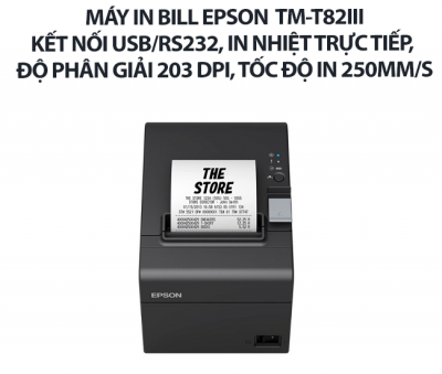 Máy in Bill Epson TM-T82III (USB+RS232) - Kết nối usb/rs232, in nhiệt trực tiếp, độ phân giải 203 dpi, tốc độ in 250mm/s