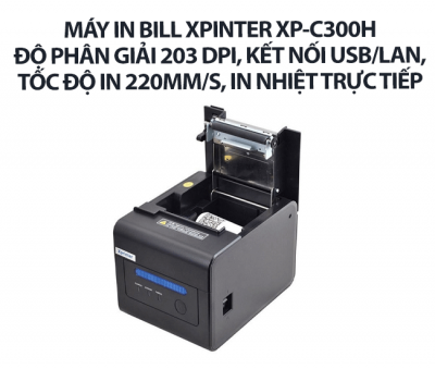 Máy in Bill Xprinter XP-C300H - Độ phân giải 203 dpi, kết nối usb/lan, tốc độ in 220mm/s, in nhiệt trực tiếp