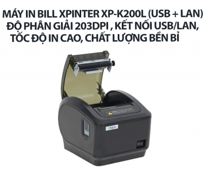 Máy in Bill Xprinter XP-K200L (USB + LAN) - Độ phân giải 203dpi, kết nối usb/lan, tốc độ in cao, chất lượng bền bỉ