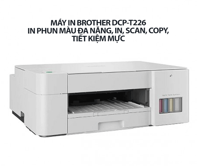 - Máy in Brother DCP-T226 – In phun màu đa năng, in, scan, copy, tiết kiệm mực – Giải pháp in ấn tiết kiệm và chất lượng chuyên nghiệp