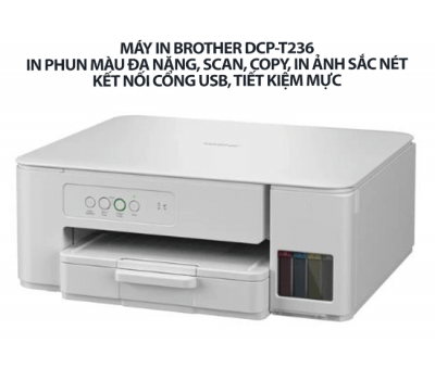 Máy in Brother DCP-T236 - In phun màu đa năng, Scan, Copy, in ảnh sắc nét kết nối cổng USB, tiết kiệm mực