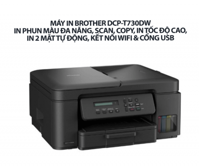 - Máy in Brother DCP-T730DW - In phun màu đa năng, Scan, Copy, in tốc độ cao, in 2 mặt tự động, kết nối Wifi & cổng USB