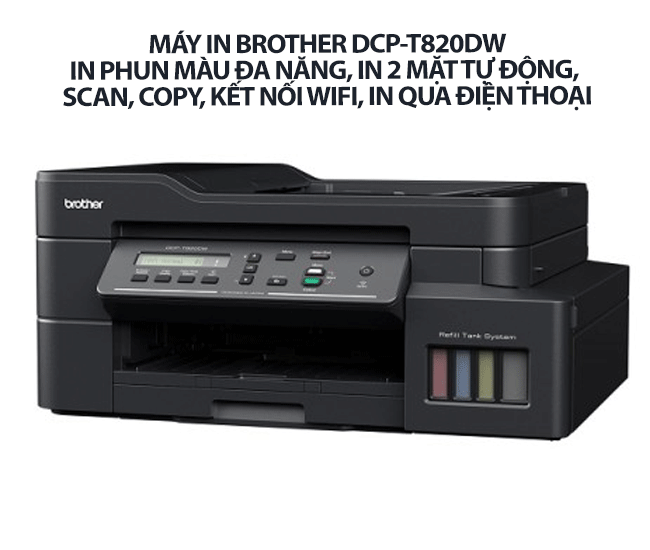 Máy in Brother DCP-T820DW – In phun màu đa năng, in 2 mặt tự động, scan, copy, kết nối WiFi, in qua điện thoại – Giải pháp in ấn đa năng cho văn phòng hiện đại