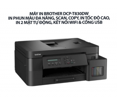 - Máy in Brother DCP-T830DW - In phun màu đa năng, Scan, Copy, in tốc độ cao, in 2 mặt tự động, kết nối Wifi & cổng USB