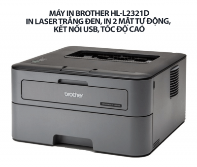 Máy in Brother HL-L2321D - In laser trắng đen, in hai mặt tự động, kết nối USB, tốc độ cao – Giải pháp in ấn hiệu quả, tiết kiệm chi phí cho văn phòng