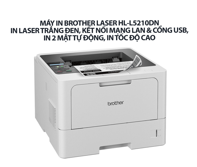 - Máy in Brother HL-L5210DN - In laser trắng đen, kết nối mạng LAN & cổng USB, in 2 mặt tự động, in tốc độ cao