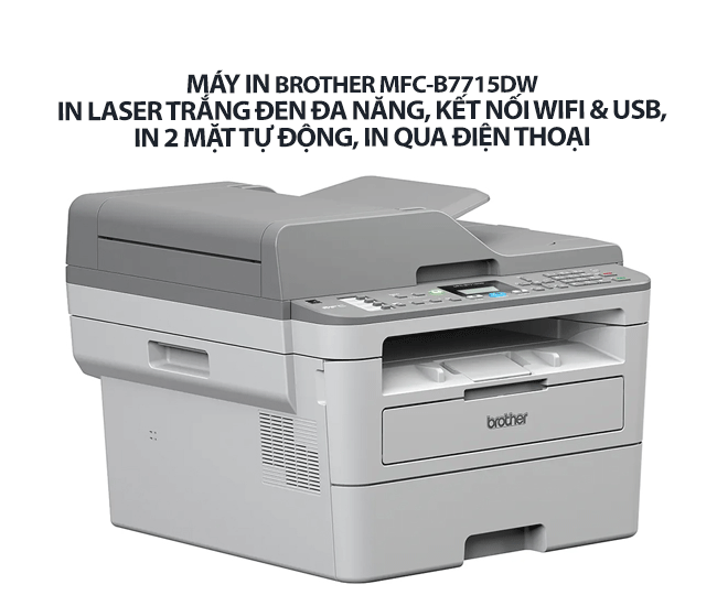 - Nếu bạn cần một máy in đa năng có thêm tính năng fax, tốc độ in nhanh, kết nối linh hoạt thì Brother MFC-B7715DW là lựa chọn vượt trội.