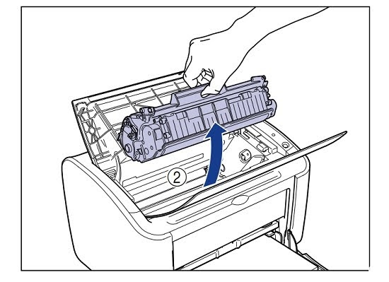 Bước 2: Nâng hộp mực (1) theo hướng mũi tên, sau đó kéo ra (2):