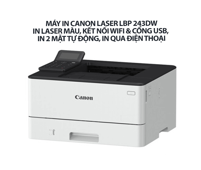 - Máy in Canon LBP 243DW - In laser màu, kết nối Wifi & Cổng USB, in 2 mặt tự động, in qua điện thoại