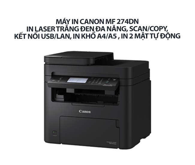 Máy in Canon MF264DW - In laser trắng đen đa năng, Scan/Copy, kết nối USB/WiFi, in khổ A4/A5, in 2 mặt tự động