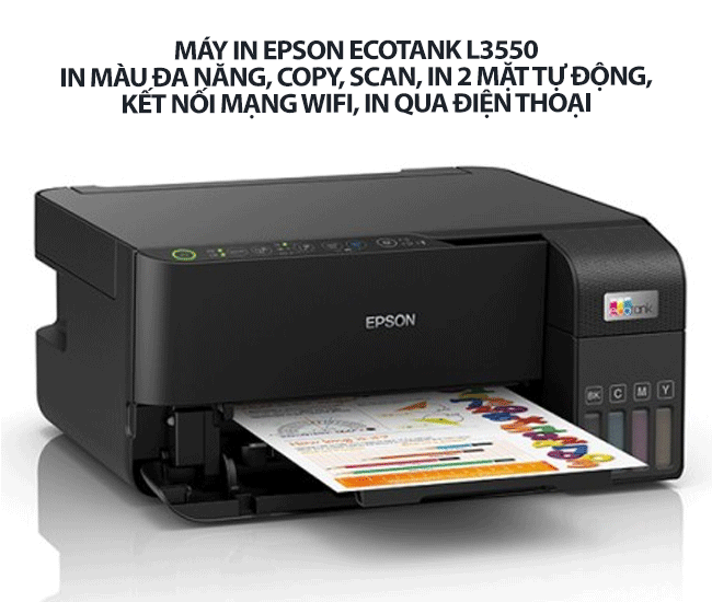 Máy in Epson EcoTank L3550 - In màu đa năng, in 2 mặt tự động, copy, scan, Wi-Fi, in từ điện thoại
