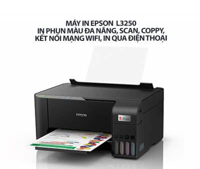 Máy in Epson L3250 – In phun màu đa năng, Scan, Copy, kết nối mạng Wifi, in qua điện thoại – Giải Pháp In Ấn Hoàn Hảo Cho Gia Đình Và Doanh Nghiệp