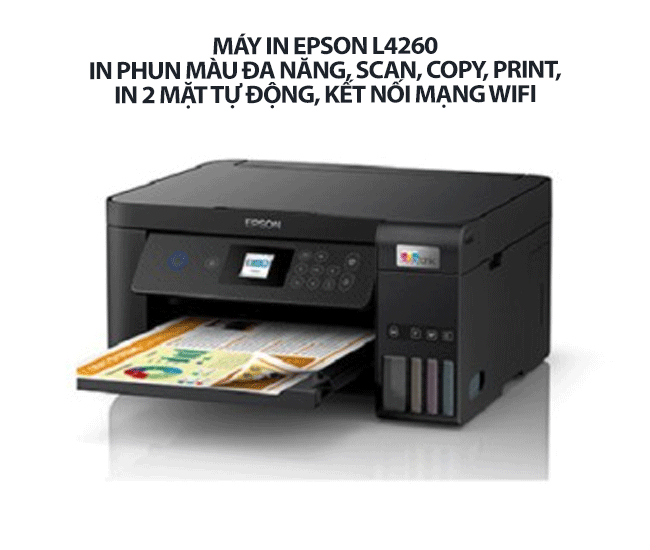 Máy in Epson L4260 – In phun màu đa năng, Scan, Copy, Print, in 2 mặt tự động, kết nối mạng WiFi – Giải Pháp In Ấn Hoàn Hảo Cho Văn Phòng Và Cá Nhân