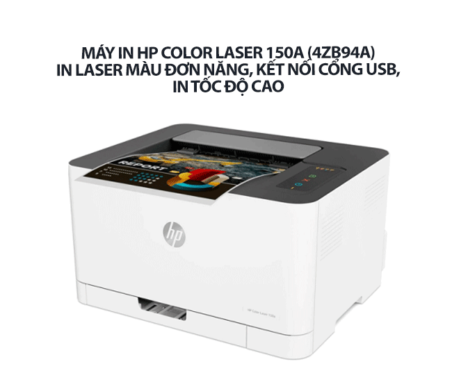 Máy in HP Color Laser 150A (4ZB94A) - In laser màu đơn năng, Kết nối cổng USB, in tốc độ cao