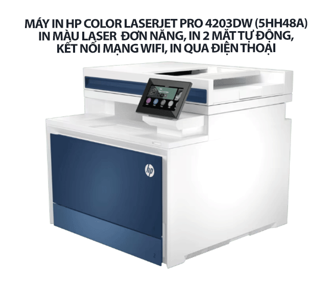 - Máy in HP Color LaserJet Pro 4203DW (5HH48A) - In màu laser đơn năng, in 2 mặt tự động, kết nối mạng Wifi, in qua điện thoại – Máy In Đa Năng Đỉnh Cao Cho Doanh Nghiệp Hiện Đại