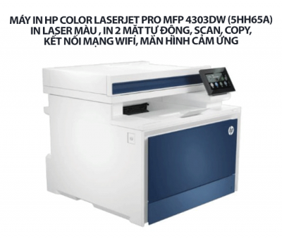 - Máy in HP Color LaserJet Pro MFP 4303DW (5HH65A) - In laser màu, in 2 mặt tự động, scan, copy, kết nối mạng Wifi, màn hình cảm ứng – Sự Lựa Chọn Hoàn Hảo Cho Doanh Nghiệp Hiện Đại