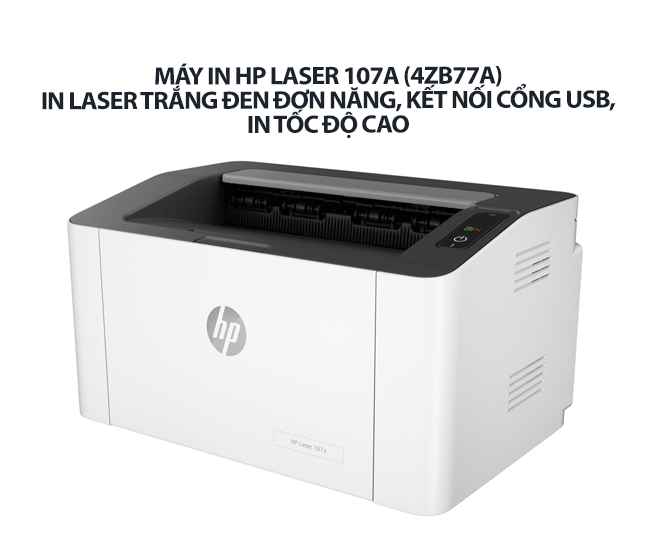 Máy in HP Laser 107A (4ZB77A) - In laser trắng đen đơn năng, kết nối cổng USB, in tốc độ cao - Giải Pháp In Ấn Hiệu Quả Cho Văn Phòng Nhỏ