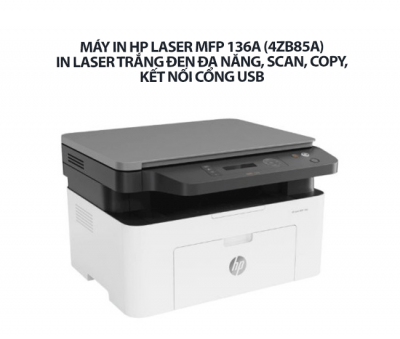 Máy in HP Laser MFP 136A (4ZB85A) - In laser trắng đen đa năng, In, Scan, Copy, Kết nối cổng USB