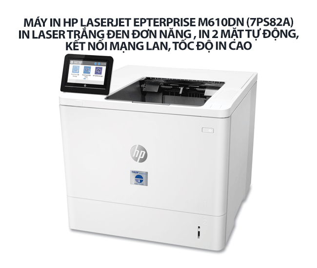 - Máy in HP LaserJet Enterprise M610DN (7PS82A) -In trắng đen đơn năng in 2 mặt tự động, kết nối mạng LAN, in tốc độ cao – Hiệu Suất Cao Cho Văn Phòng Hiện Đại
