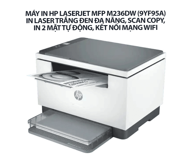 Máy in HP LaserJet MFP M236DW (9YF95A) - In laser trắng đen đa năng, Scan, Copy, in 2 mặt tự động, kết nối mạng WiFi - Lựa chọn hoàn hảo cho văn phòng hiện đại