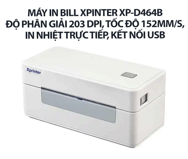 Máy in mã vạch Xprinter XP-D464B (USB) - Độ phân giải 203 dpi, tốc độ 152mm/s, in nhiệt trực tiếp, kết nối USB