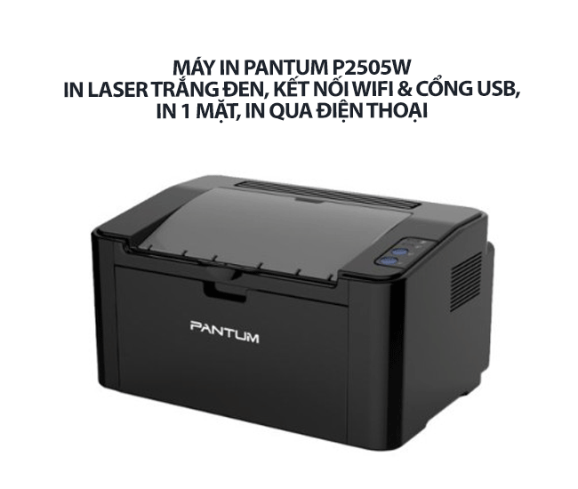 Máy in Pantum P2505W - In Laser Trắng Đen, Kết Nối WiFi & Cổng USB, In 1 Mặt, In Qua Điện Thoại
