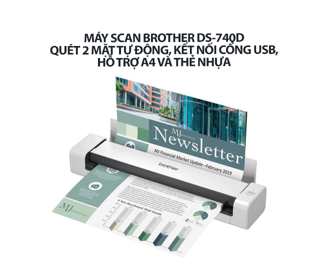 Máy Scan Brother DS-740D - Quét 2 mặt tự động, kết nối cổng USB, hỗ trợ A4 và thẻ nhựa - Giải pháp quét di động lý tưởng cho không gian nhỏ