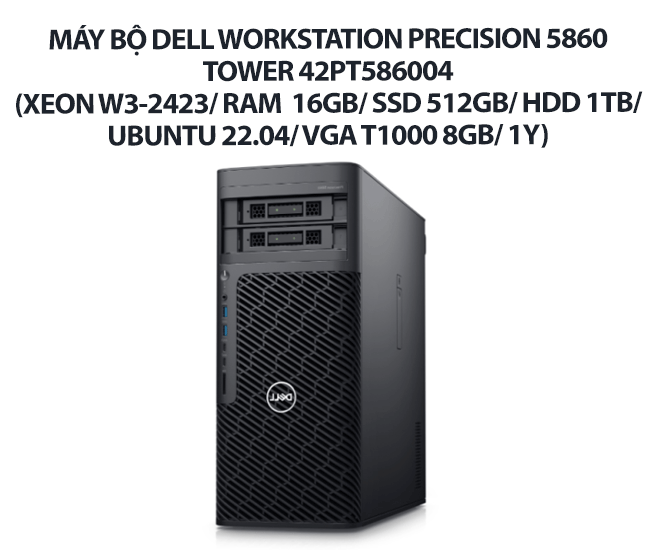 Máy bộ Dell Workstation Precision 5860 Tower 42PT586004 (Xeon w3-2423/ Ram 16GB/ SSD 512GB/ HDD 1TB/ VGA T1000 8GB/ 1Y) - Giải Pháp Hoàn Hảo Cho Công Việc Sáng Tạo và Kỹ Thuật
